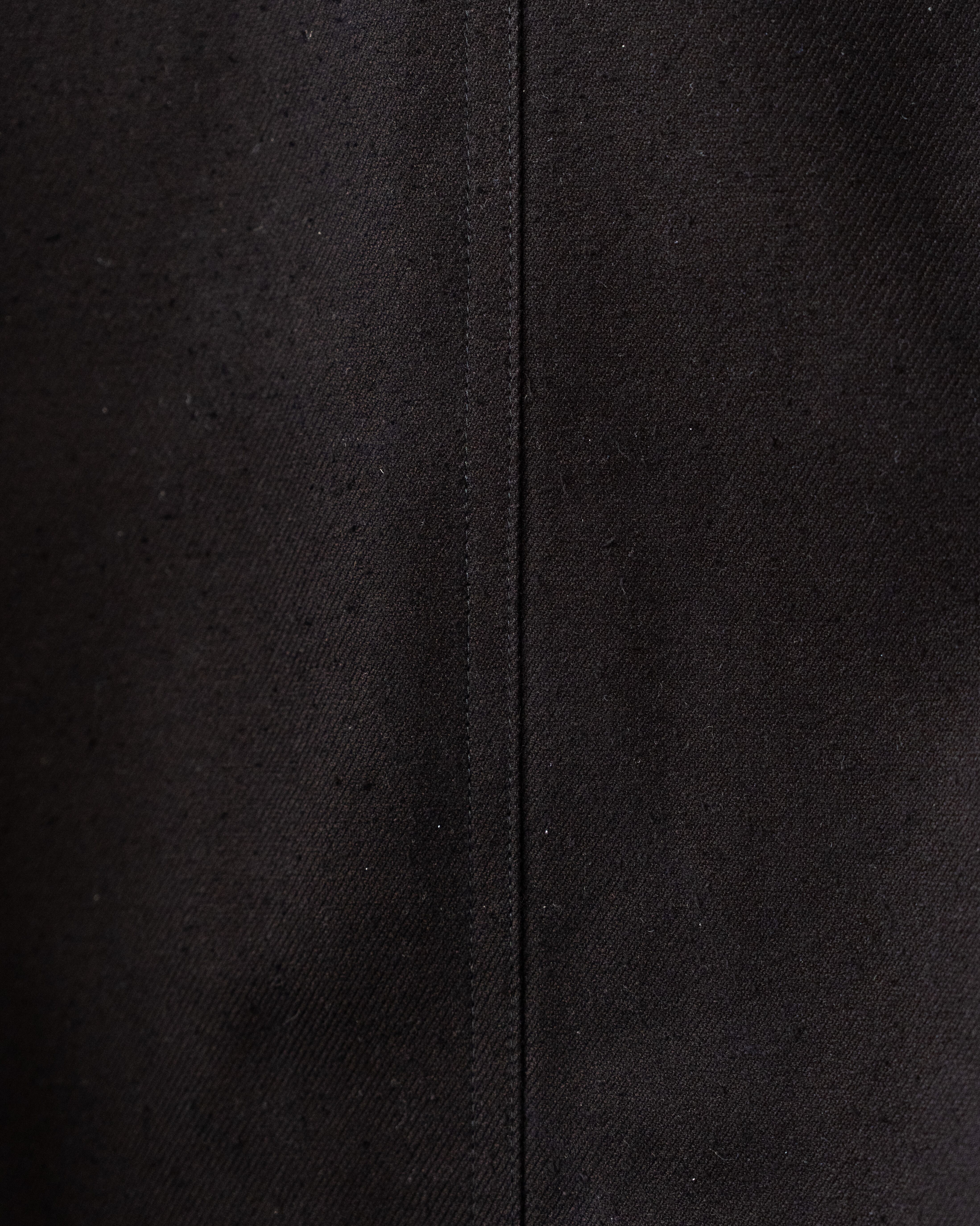 古くから普段着用の着物で採用されている紬(つむぎ)地に着想を得てオリジナルで織られた生地は、シルク本来のネップ(節感)と光沢を活かしながらも、日常のヘビーユースにも耐え得るように設計されている。