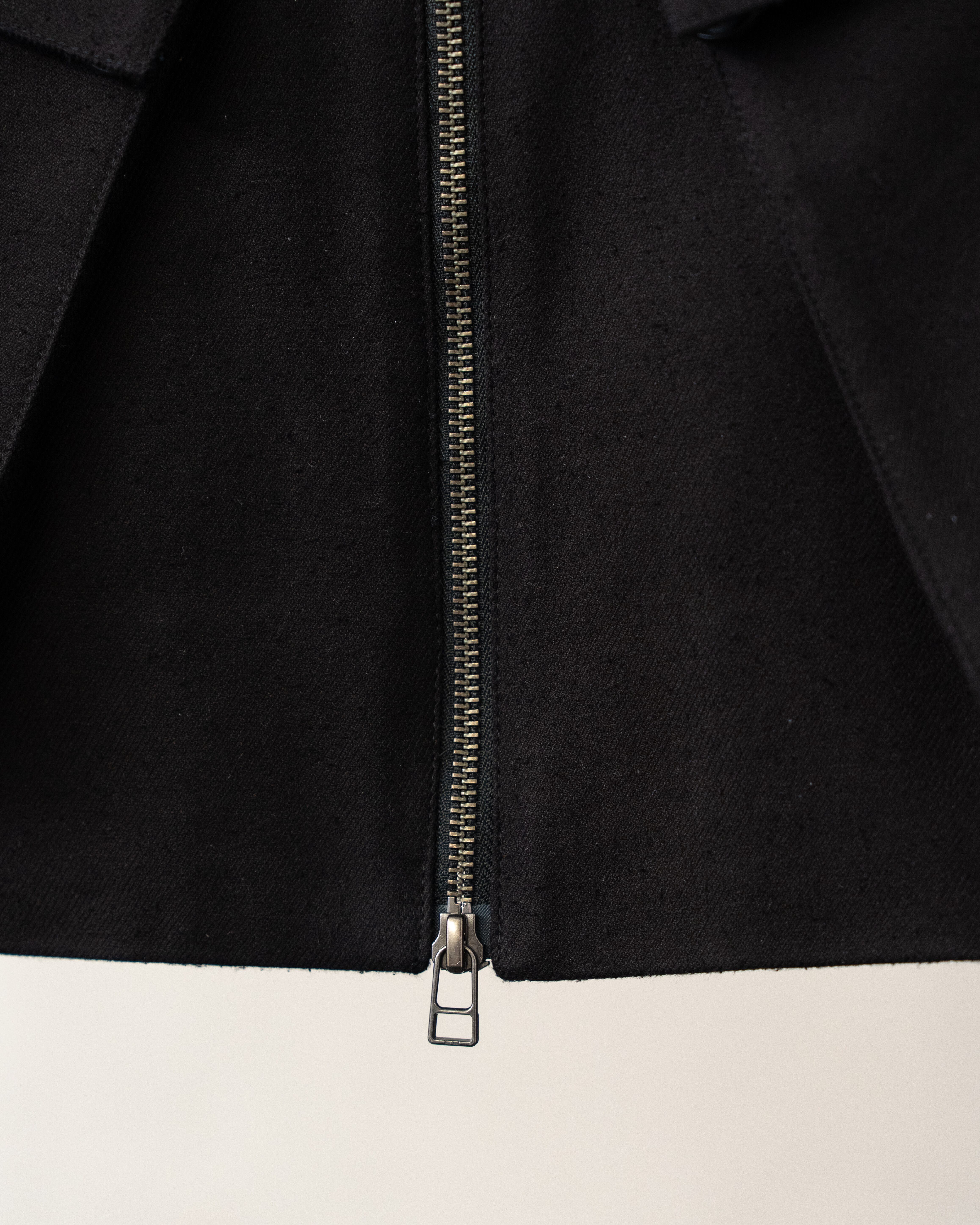 肩周りのアクションプリーツにより、腕を伸ばす、あげるなど、現場のカメラマン特有の大きな動作にも対応。生地の魅力を最大限活かしながら、機能美を追求した。